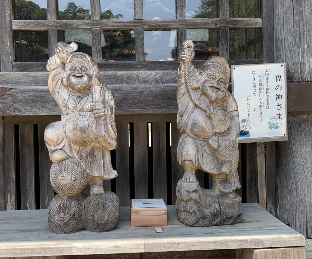 境内にはお二人と思われる2体の像があって、撫でるとご利益があるそうで、私も撫でてきました。