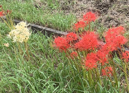 最近彼岸花も赤だけではなく、白い花も見かけるようになりました。