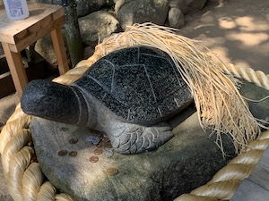 境内には、亀の像があり、それは宝くじの当選者が寄付したものらしいです。
