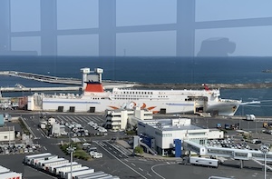 北海道行きのフェリー、サンフラワーが港に停まっていて、これから夕方出港するようです。