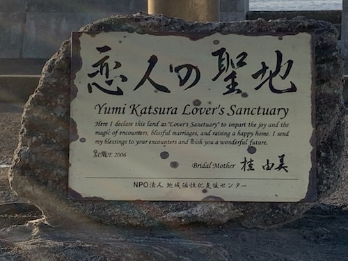 金谷のフェリー乗り場駐車場に「恋人の聖地」の碑が立っています。