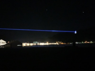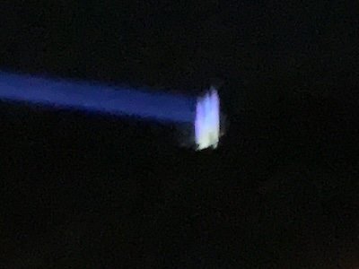 ネット上では、空中に何本も青い光が伸びているような写真や映像を見かけていたので、かなり派手な演出を想像していたのですが、現地で見る印象はずいぶん違いました。