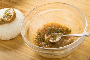 サーモンやマグロの刺身を塩麹でまぶしたものは、一晩置くと旨みが凝縮して、お酒やご飯が進みます。